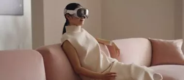 Le casque d’Apple utilise la réalité augmentée « passthrough » et offre l’illusion d’un monde réel avec des objets virtuels superposés grâce à ses écrans haute définition, ses caméras qui capturent l’environnement avec précision et l’exécution d’applications VR (virtual reality - réalité virtuelle) complètes. L’utilisateur a alors l’impression d’être transporté dans un autre univers tout en continuant à avoir un aperçu de ce qu’il se passe autour de lui pour ne pas s’isoler, comme c’est le cas habituellement avec les casques virtuels. Une couronne digitale au sommet du casque permet de personnaliser son niveau d’immersion.
